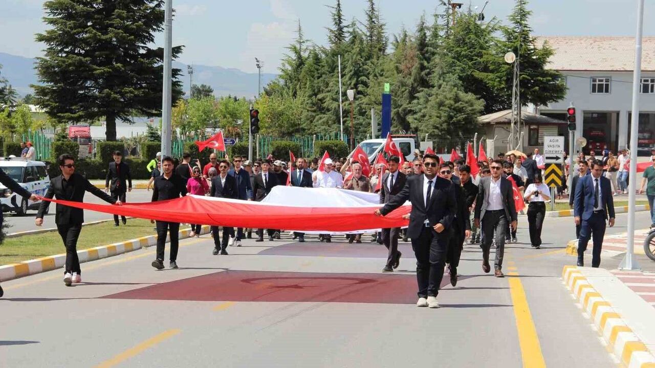 Çorum’da yüzlere öğrenci, ellerindeki bayraklarla şehitler için saygı ve vefa yürüyüşü yaptı.