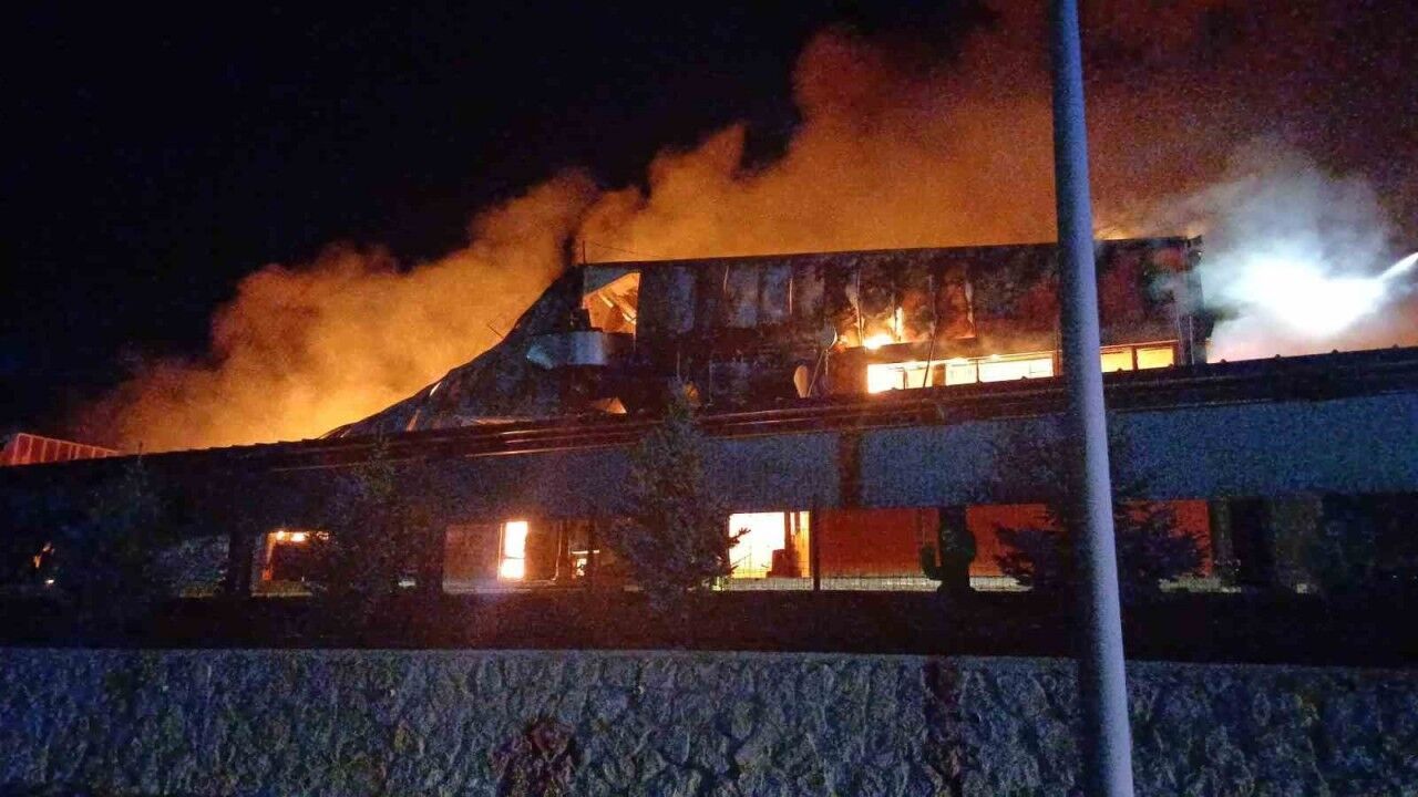 Ara ara patlamaların gerçekleştiği yangına ekiplerin müdahalesi sürüyor.