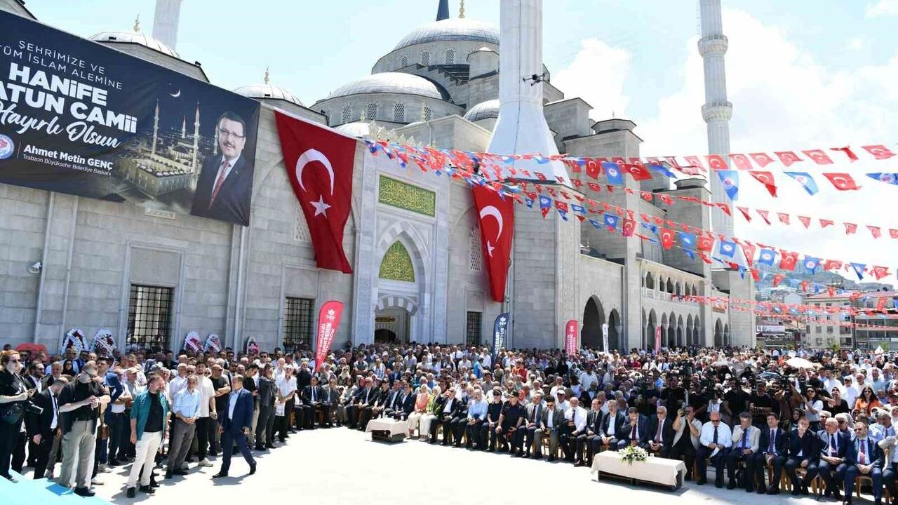 Trabzon’un Ortahisar ilçesi Pazarkapı mevkiinde inşa edilen ve Doğu Karadeniz Bölgesi’nin en büyük camisi olma özelliğini taşıyan Hanife Hatun Camii, düzenlenen görkemli bir törenle ibadete açıldı.