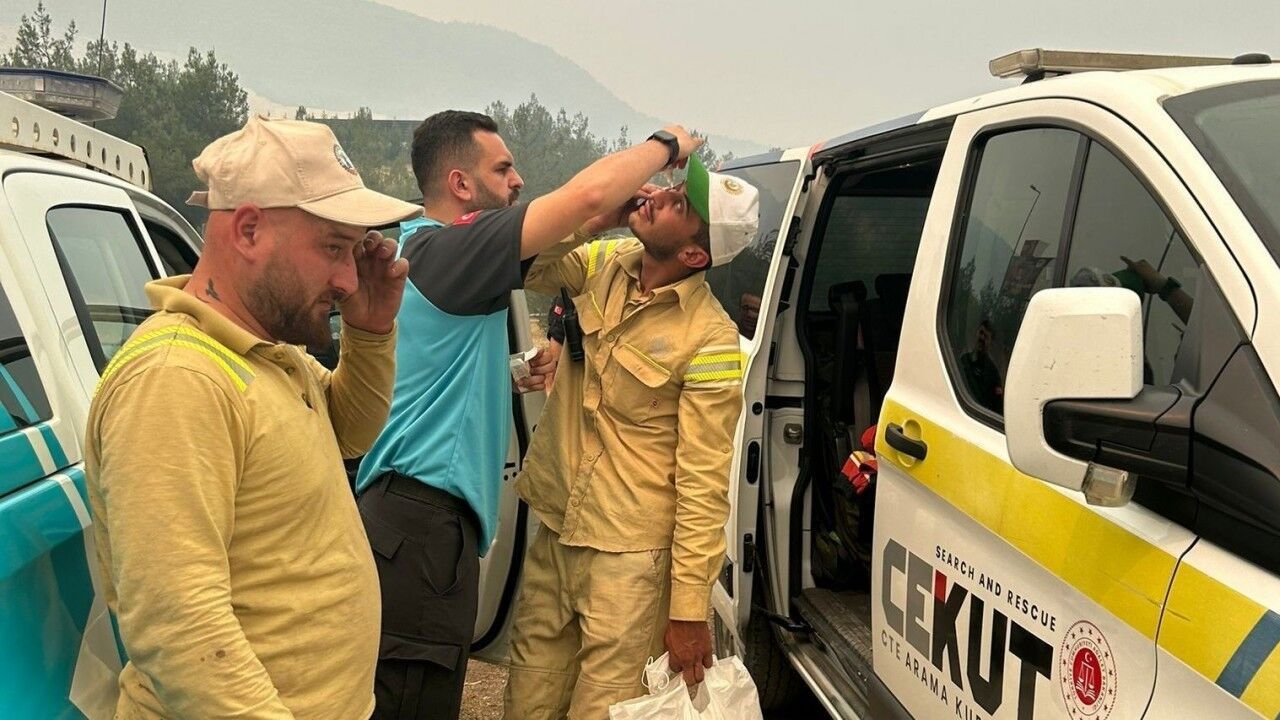 Düzce İl Sağlık Müdürlüğü’ne bağlı UMKE ekibi Karabük’teki orman yangınında destek için görevdeler.