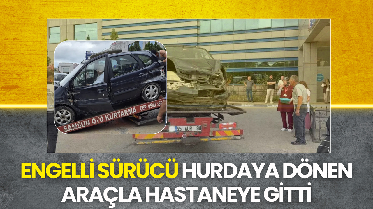Samsun’un Canik ilçesinde meydana gelen kazada hurdaya dönen araçtan inmeyen engelli sürücü, çekiciye yüklenen otomobilin içinde hastaneye götürüldü.