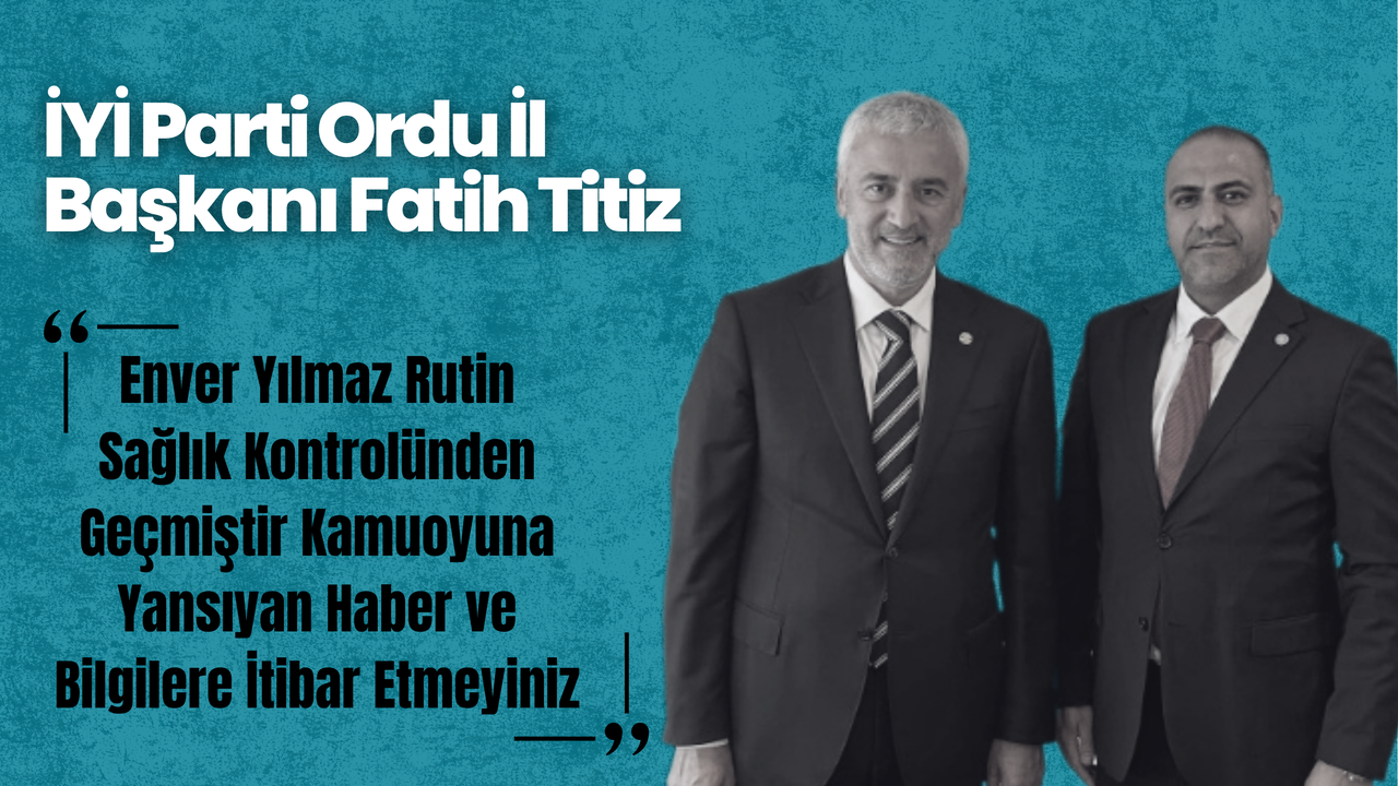 İYİ Parti Ordu İl Başkanı Fatih Titiz, İYİ Parti Siyasi İşler Başkanı ve Genel Başkan Yardımcısı Enver Yılmaz’ın sağlık durumu hakkında yazılı bir açıklama yaptı. Geçtiğimiz aylarda by-pass ameliyatı geçiren Yılmaz’ın, bugün Ordu Üniversitesi Eğitim ve Araştırma Hastanesi’nde rutin kontrollerden geçtiği belirtildi.