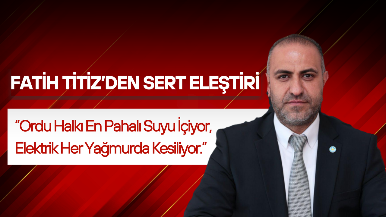 İYİ Parti Ordu İl Başkanı Fatih Titiz, şehirde su ve elektrikle ilgili yaşanan sorunlara sert tepki gösterdi. Ordu’nun yüksek su fiyatları ve altyapı eksiklikleriyle gündeme geldiğini belirten Titiz, “Ordu insanı hem kaliteli suyu hem de kesintisiz elektriği hak ediyor” dedi.