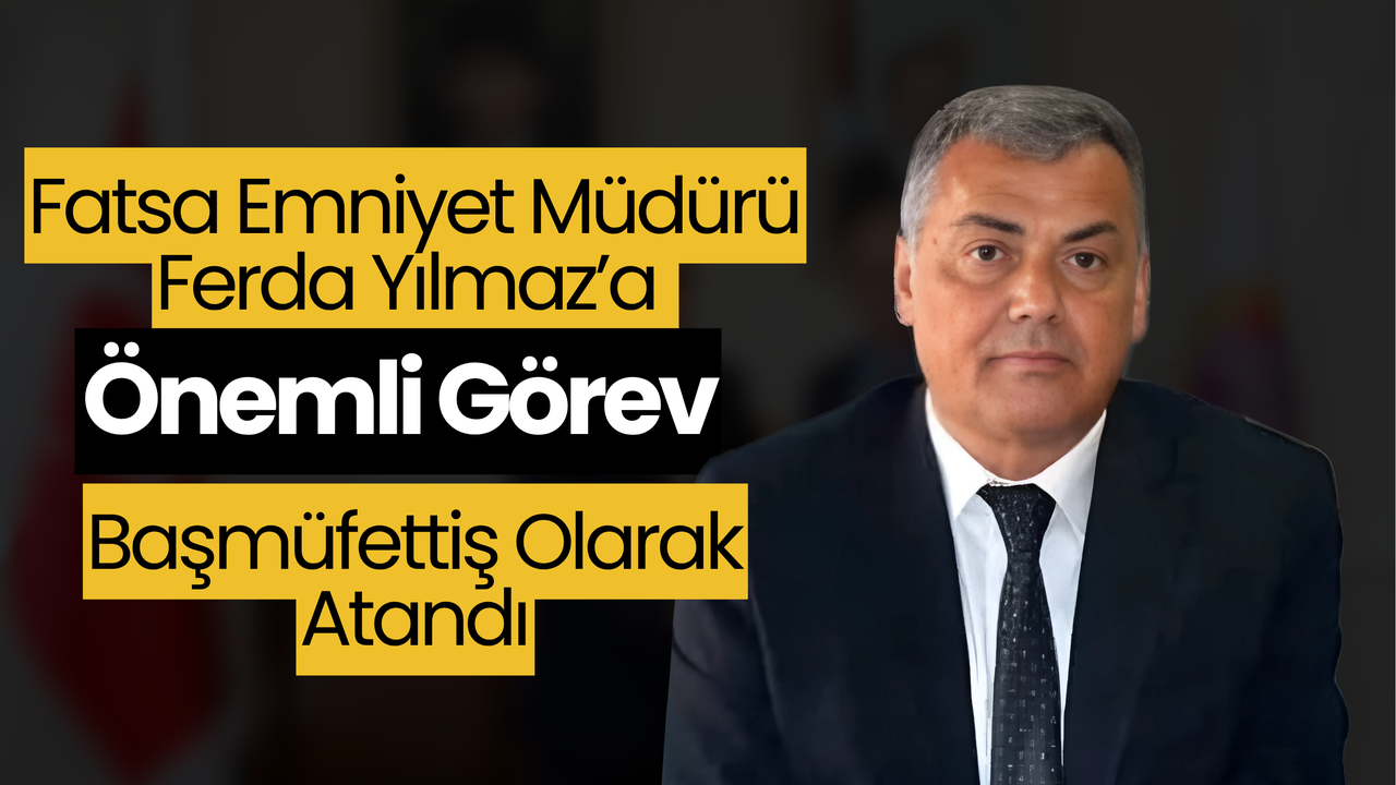 Ordu’nun Fatsa ilçesinde uzun süredir İlçe Emniyet Müdürü olarak görev yapan Ferda Yılmaz, önemli bir göreve terfi etti. Yılmaz, 1. Sınıf Emniyet Müdürü rütbesiyle Emniyet Genel Müdürlüğü Teftiş Kurulu Başkanlığı’na Başmüfettiş olarak atandı.