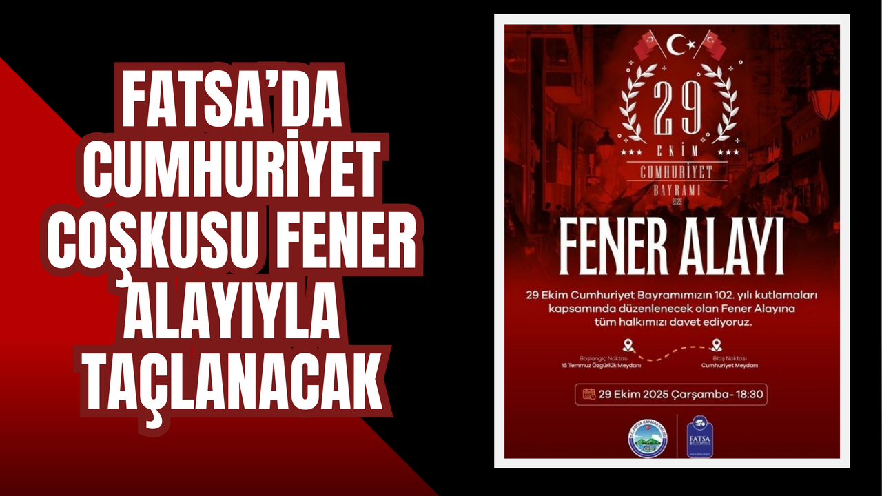 Cumhuriyet’in 102. yılı kutlamaları, Fatsa’da büyük bir coşkuyla karşılanıyor. Fatsa Belediyesi tarafından organize edilen Fener Alayı Yürüyüşü, yarın akşam saat 18.30’da 15 Temmuz Özgürlük Meydanı’ndan başlayacak.