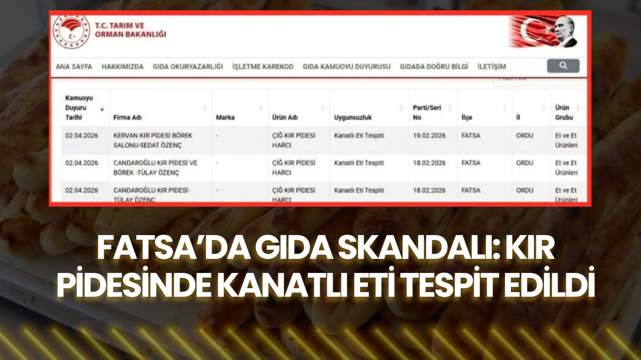 Tarım ve Orman Bakanlığı tarafından yayımlanan taklit ve tağşiş listesi, gıda güvenliğine ilişkin yeni bir ihlali daha gözler önüne serdi. Açıklanan listede, Ordu’nun Fatsa ilçesinde faaliyet gösteren iki işletmede yapılan denetimlerde, kır pidesi harcında “kanatlı eti” kullanıldığı tespit edildi.