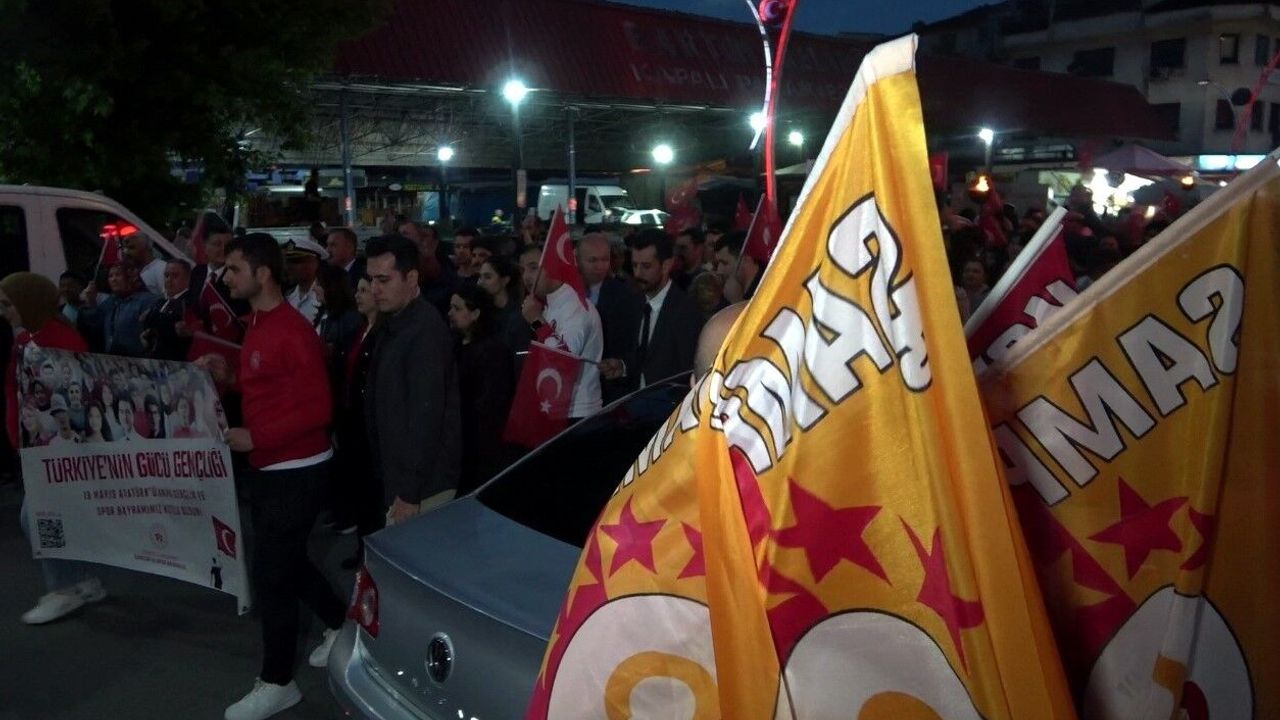 Bartın’da 19 Mayıs Gençlik ve Spor Bayramı nedeniyle düzenlenen fener alayı, derbinin oynandığı saatlere denk gelince Galatasaraylı Vali Nurtaç Arslan ile Fenerbahçeli CHP’li vekil Aysu Bankoğlu, yanındakilere maçın skorunu sorarak bilgi aldı.