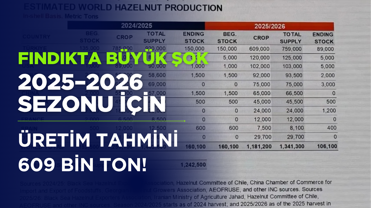 Fındık üretiminde dünya lideri konumundaki Türkiye, yeni sezon için açıklanan üretim tahminiyle büyük bir hayal kırıklığı yaşadı. Uluslararası Sert Kabuklu Meyveler Konseyi (INC), İspanya’nın Mayorka kentinde düzenlenen 42. Dünya Kuruyemiş ve Kuru Meyve Kongresi’nde Türkiye’nin 2025–2026 sezonu fındık rekoltesini 609 bin ton olarak duyurdu.