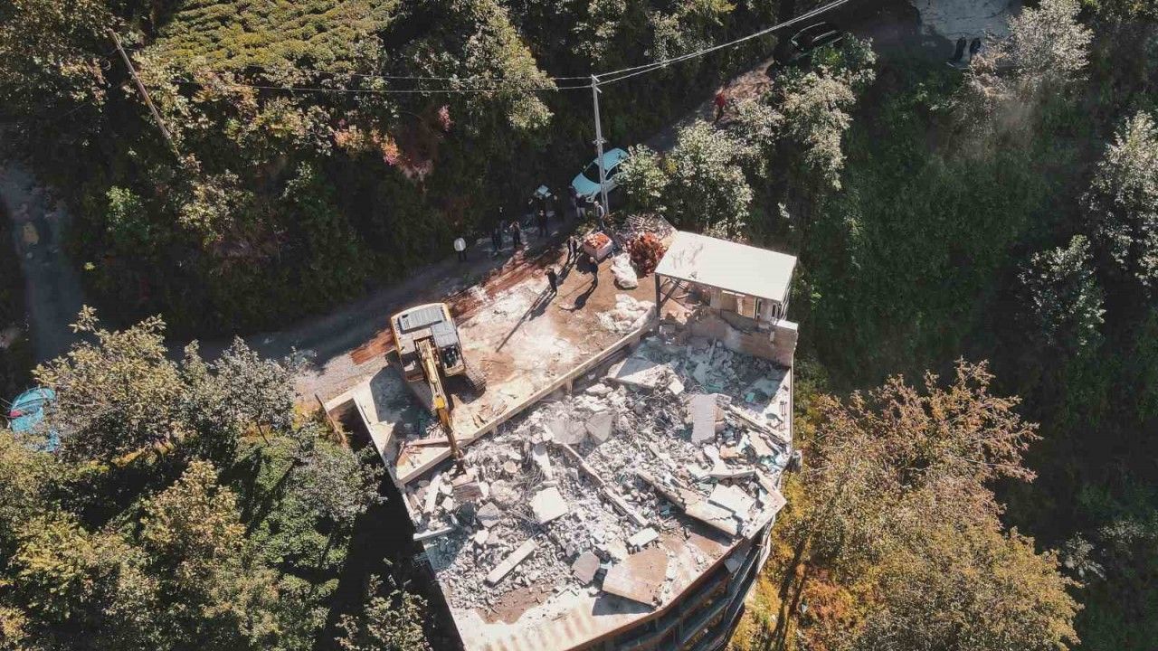 Rize’nin Ardeşen ilçesi ve Çamlıhemşin ilçesini birbirine bağlayan Fırtına Vadisi üzerindeki kaçak ve riskli yapıların yıkımı sürüyor.