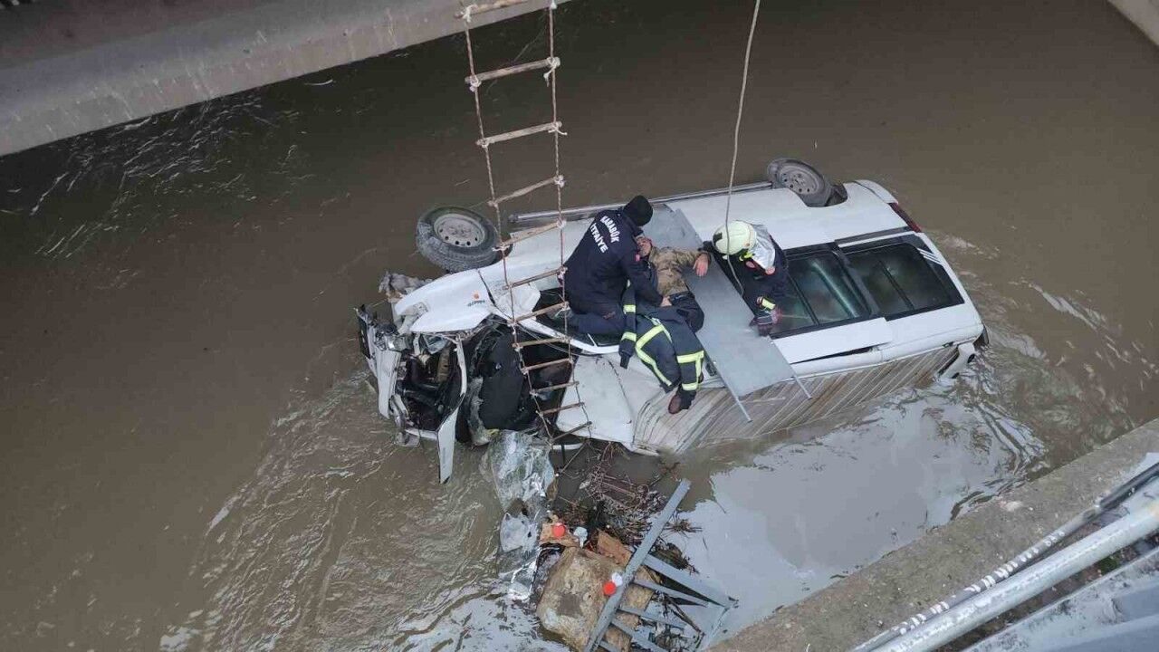 Karabük’te sabah saatlerinde kavşaktan döndüğü sırada frenleri boşalan minibüs demirçelik köprüsünün korkuluklarını kırarak Araç çayına uçtu. Kazada yan vaziyette suya batan aracın sürücüsü yaralı olarak itfaiye ekiplerinin çalışmaları ile kurtarıldı.