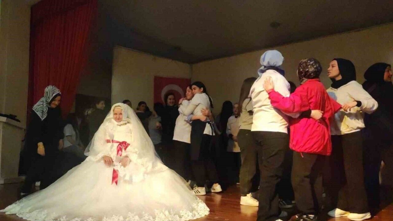 Samsun’da Anneler Günü dolayısıyla huzurevlerinde kalan anneleri okulda ağırlayan meslek liseliler, 65 yaşındaki huzurevi sakininin gelinlik giyme hayalini gerçeğe dönüştürdü.