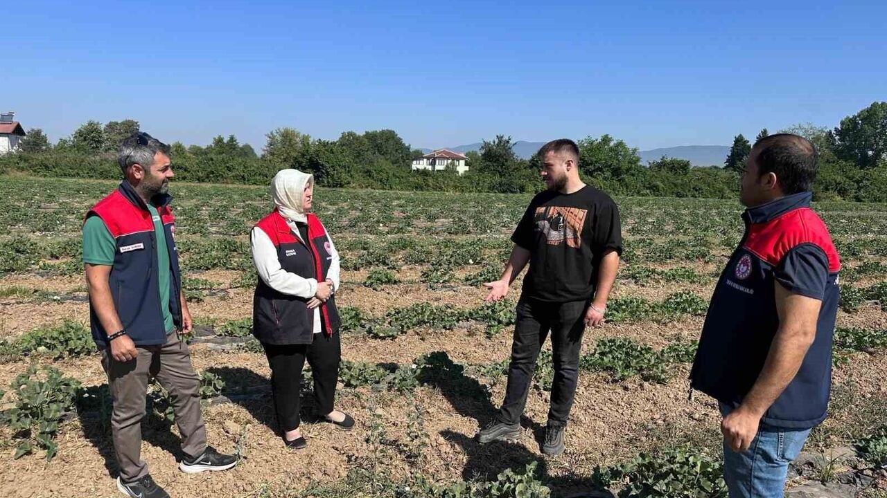 Düzce İl Tarım ve Orman Müdürü Esra Uzun, Koordinasyon ve Tarımsal Veriler Şube Müdürü Burak Durna ile Bitkisel Üretim ve Bitki Sağlığı Şube Müdürü Cem Özmen’in katılımıyla, Kirazlı Köyü’nde genç çiftçi Yusuf Şamil Aydın’ın üretim alanlarında incelemelerde bulundu. Üniversite öğrencisi olan genç çiftçi Yusuf Şamil Aydın’ın 25 dekarlık kavun, karpuz ve kabak üretim alanı yerinde değerlendirildi. Sürdürülebilir üretim yöntemleri ve yeni nesil tarım uygulamalarıyla dikkat çeken bu alan, kırsalda kalkınma ve tarımda gençlerin artan rolü açısından örnek bir model oluşturuyor.