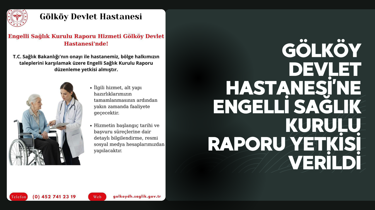 Ordu’nun Gölköy ilçesinde sağlık hizmetleri alanında önemli bir adım atıldı. Sağlık Bakanlığı’nın onayıyla Gölköy Devlet Hastanesi, Engelli Sağlık Kurulu Raporu düzenleme yetkisini resmen aldı.