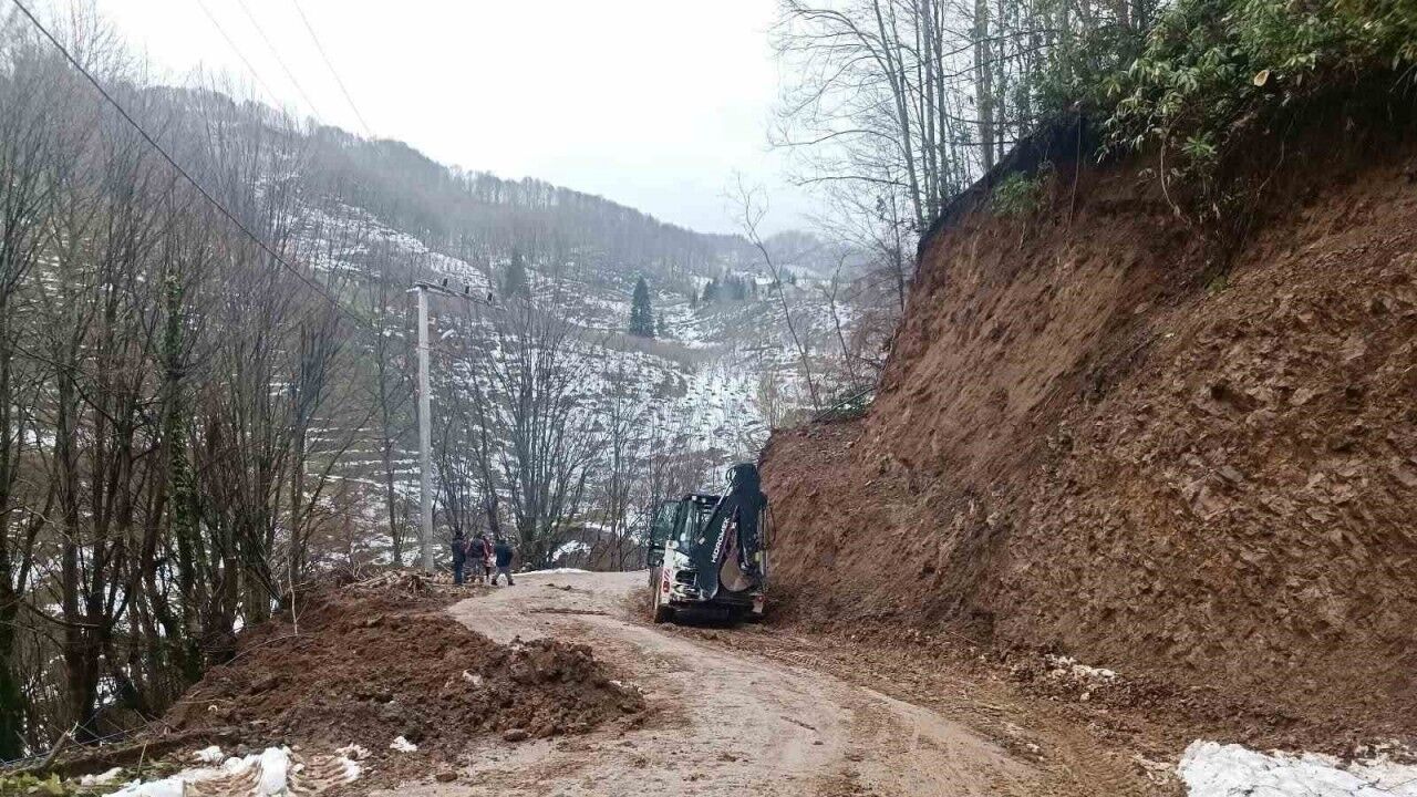 DÜZCE(İHA) – Düzce’nin Gölyaka ilçesi Çamlıbel köyünde heyelan meydana geldi. Ekiplerin müdahalesi ile yol tekrar trafiğe açıldı.