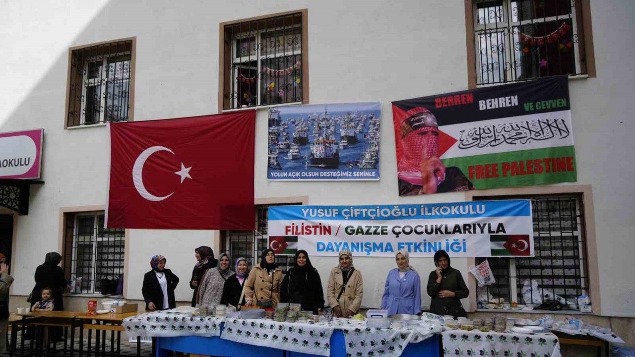 Gazze’ye insani yardım ulaştırmak amacıyla yola çıkan Sumud Filosu’na destek olmak için Gümüşhane’de Yusuf Çiftçi İlkokulu ikinci sınıf öğrencileri, velileri ve öğretmenleri tarafından anlamlı bir etkinlik düzenlendi.