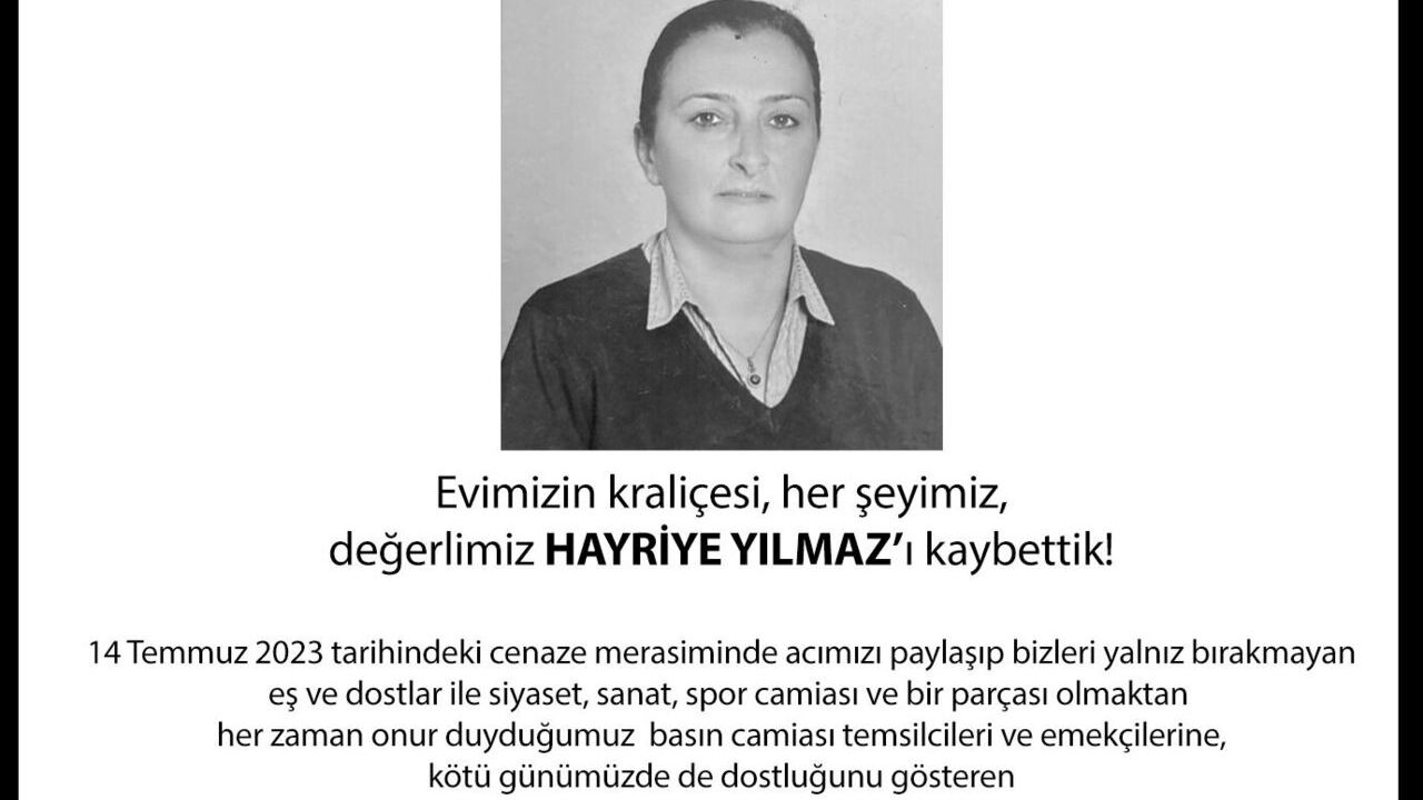 HAYRİYE YILMAZ'IN AİLESİ TEŞEKKÜR MESAJI YAYIMLADI