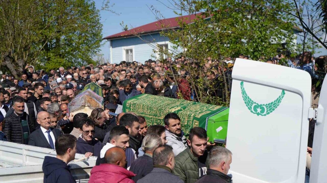 Samsun’daki heyelan faciasında hayatını kaybeden baba ile iki çocuğu, gözyaşları içinde son yolculuklarına uğurlandı.
