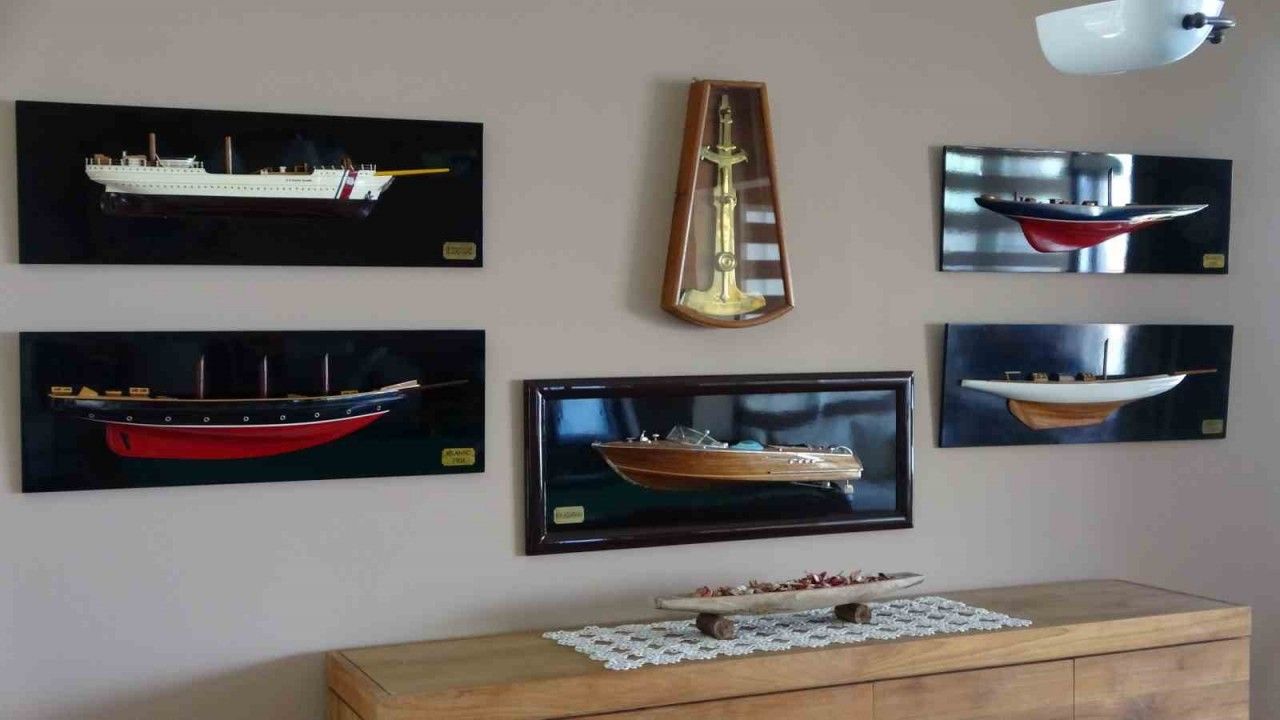 Trabzon’da emekli inşaat mühendisi Uluer Vardaloğlu, hobi olarak yaptığı yarım kesitli tekneleri evinin duvarına dekor amaçlı monte ederek sıra dışı bir görsele imza attı.