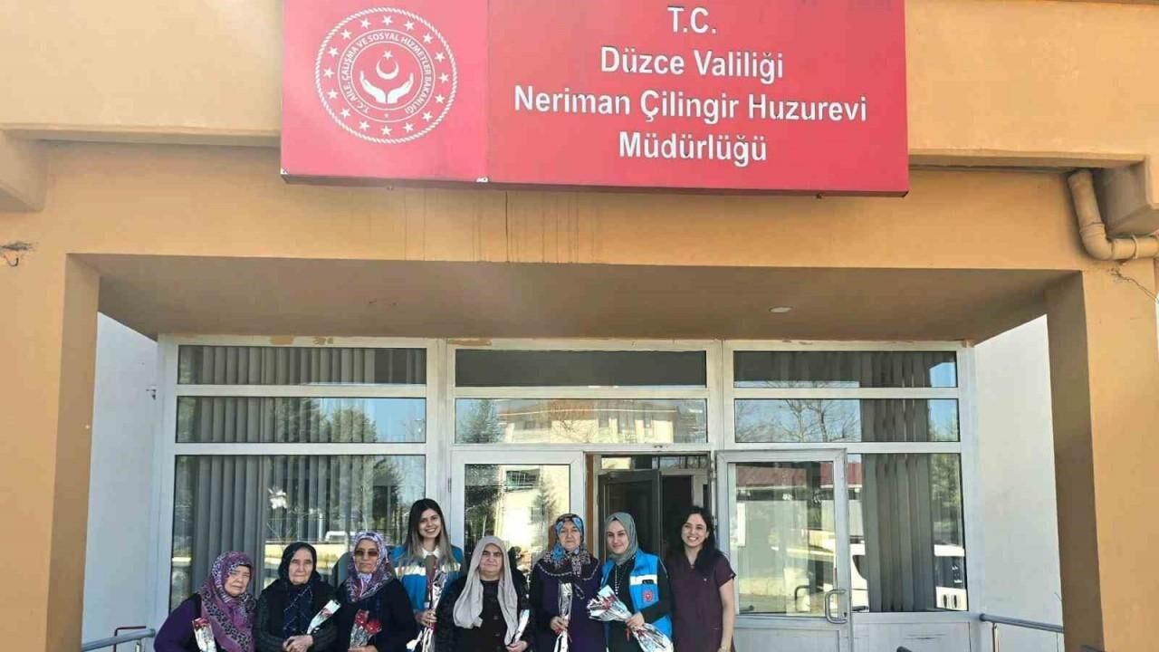 Düzce Ağız ve Diş Sağlığı Hastanesi evde sağlık hizmetleri birimi tarafından huzurevinde kalan yaşlılara ağız ve diş sağlığı eğitimi verilirken Yaşlılara Saygı Haftasını kutlayıp çiçek verdiler.