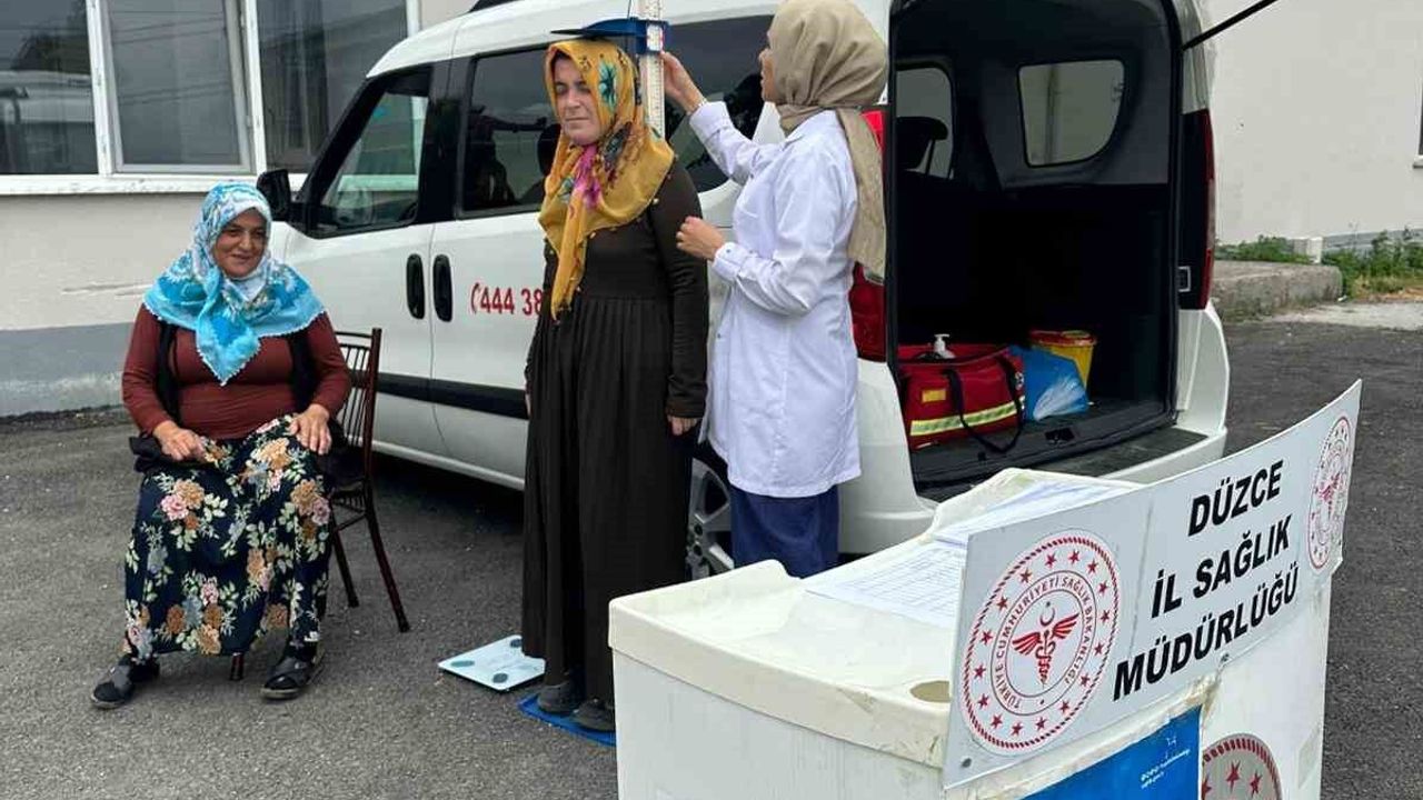 Düzce İl Sağlık Müdürlüğü tarafından yürütülen "İdeal Kilonu Öğren, Sağlıklı Yaşa" kampanyası kapsamında, Merkez Toplum Sağlığı Merkezi ekipleri Merkez’e bağlı Büyükaçma Köyü’nde stant açarak halkla buluştu.