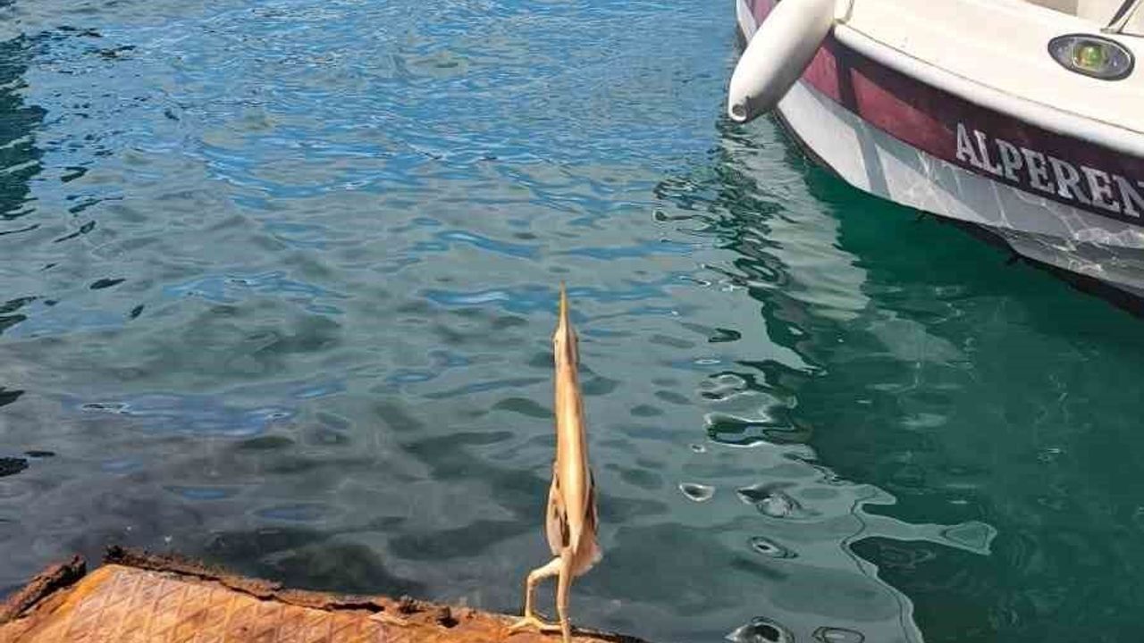 Trabzon’un Ortahisar ilçesi Faroz Balıkçı Limanı’nda bir balıkçı ilk kez gördüğü Cüce balaban kuşunu cep telefonu ile kayda aldı.