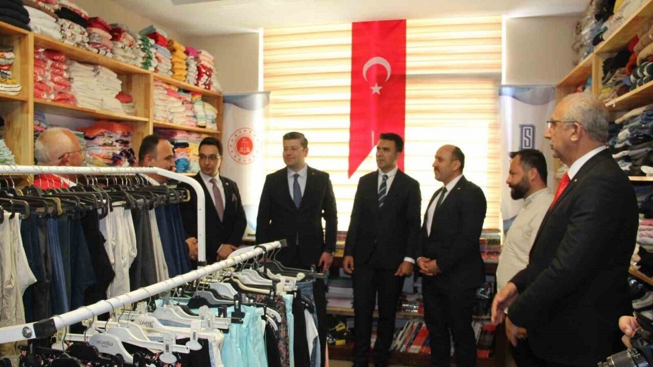 Açılışın ardından heyet, mağazadaki ürünleri inceledi.