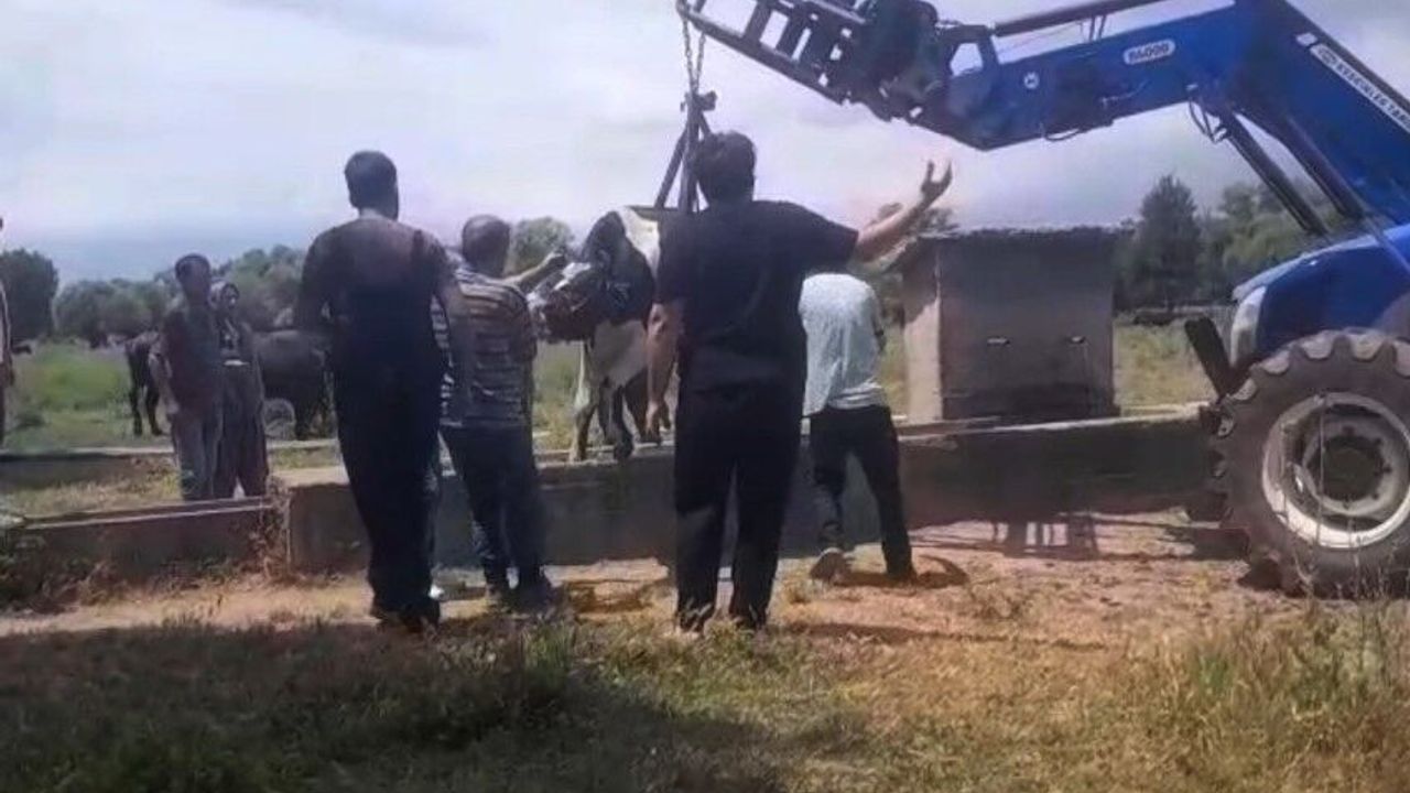 Olay, merkeze bağlı Yazıören köyünde meydana geldi. Edinilen bilgiye göre, merada otlayan bir inek, su içmek için oluğa yaklaştı. Sonrasında oluğun üzerine çıkan inek, oluğun içine girdi. İneğin sığabileceği genişlikte olan oluktan çıkamayan ineği yoldan geçen bir vatandaş fark etti. İneği kendi imkanlarıyla çıkarmaya çalışan vatandaş başarılı olamayınca köy halkından yardım istedi. Bölgeye gelen köylüler, uzun uğraşlar sonucunda traktöre bağladıkları kepçe yardımıyla ineği havaya kaldırarak bulunduğu yerden çıkardı. Köylüler daha önce de benzer olayların yaşandığını ve birkaç ineğin daha aynı şekilde oluğa sıkıştığını belirtti. Köylüler, "Buraya demir koruma yapılması şart. Her an bir hayvanın daha başına iş gelebilir" diyerek çözüm çağrısında bulundu.