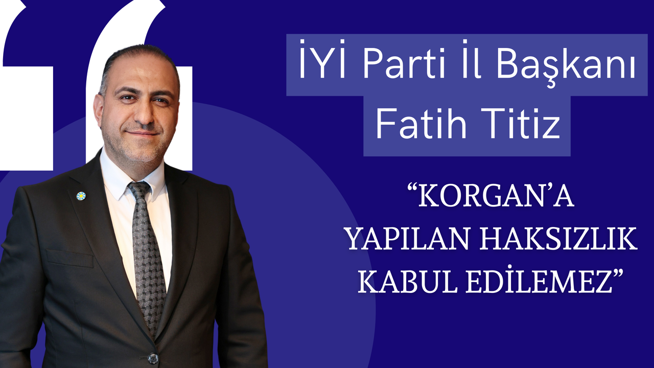 İYİ Parti Ordu İl Başkanı Fatih Titiz, Ordu’daki İYİ Partili tek belediye olan Korgan’ın hem hükümet hem de Ordu Büyükşehir Belediyesi tarafından üvey evlat muamelesi gördüğünü söyledi. Titiz, çimento desteği dahi alamayan Korgan’a yapılan haksızlığı eleştirdi.