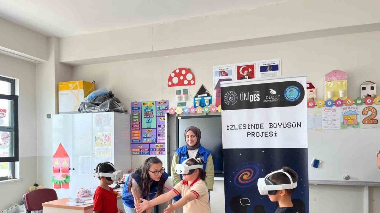 Proje çerçevesinde öğrenciler uzay yolculuğunu üç boyutlu olarak izlerken, öğrenciler eğlenceli anlar yaşadı.