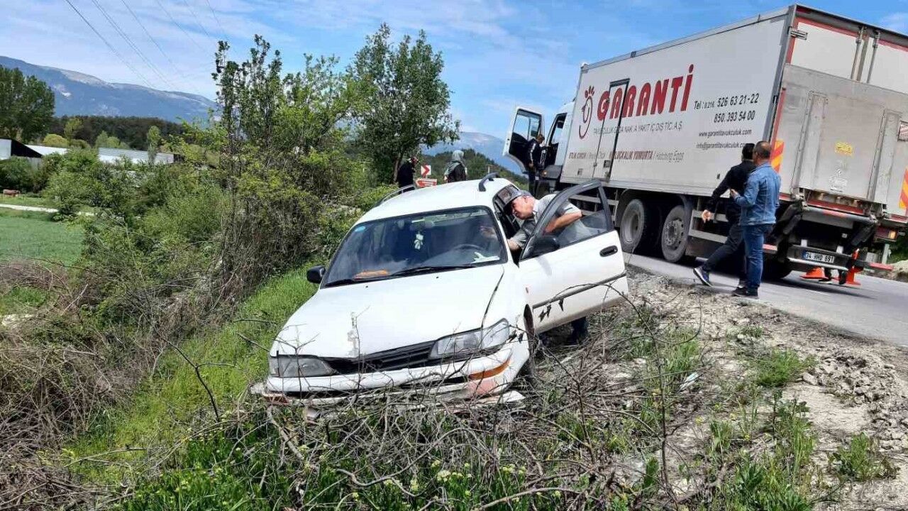 Bolu-Mudurnu kara yolunda kamyona çarpmamak için manevra yapan otomobil, şarampole savruldu. Otomobilde bulunan ve hastaneden döndüğü öğrenilen 3 kişi ölümden döndü.