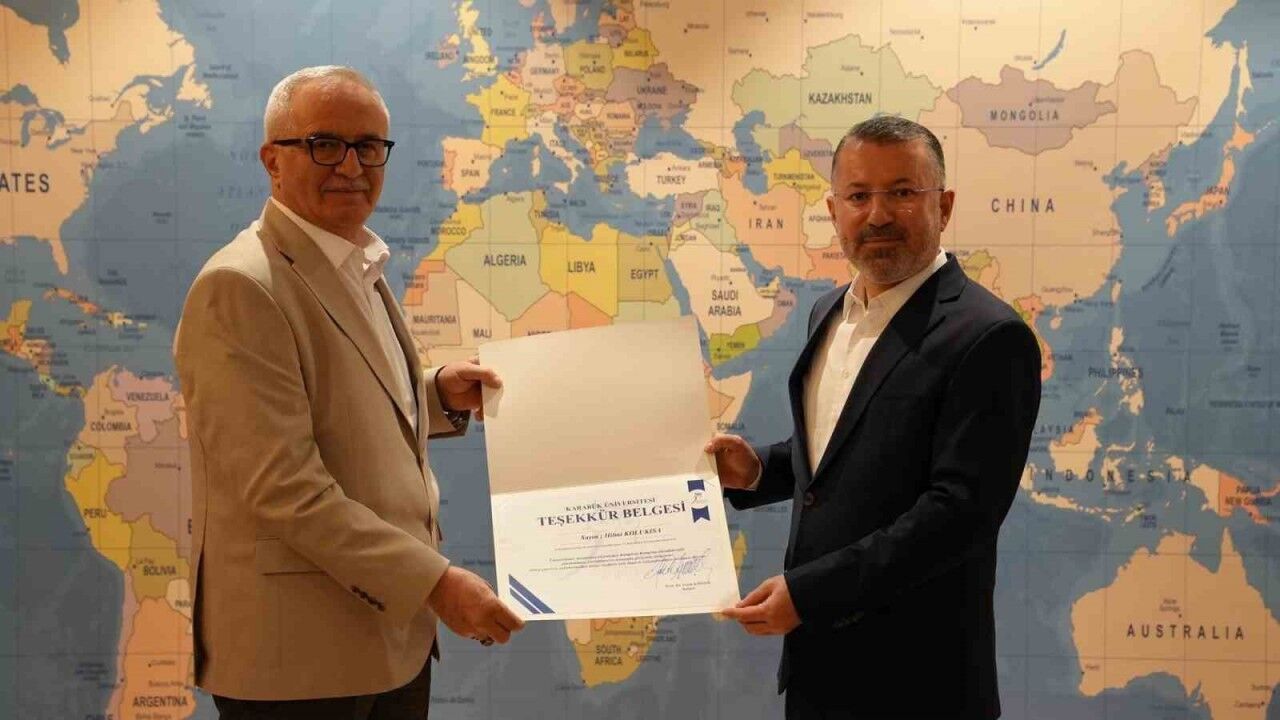 Karabük Üniversitesi Rektörü Prof. Dr. Fatih Kırışık, "Kampüste Ramazan" etkinliklerine sağladıkları katkılar dolayısıyla Karabük Dadaşlar Sosyal Yardımlaşma ve Kültürel Dayanışma Derneğine teşekkür belgesi takdim etti.