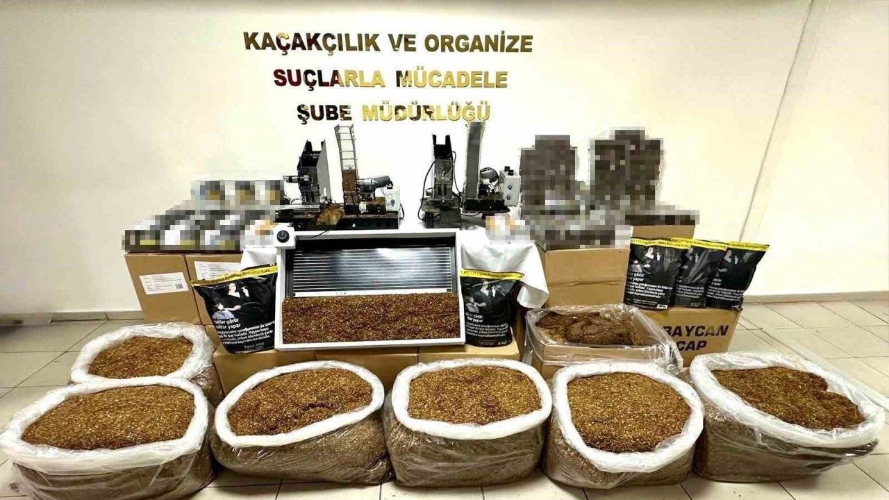 Yapılan aramalarda 170 kilogram açık kıyılmış tütün, 2 adet sanayi tipi sigara sarma makinesi, 1 adet tütün kurutma makinesi, 156 bin 400 adet boş makaron ve 4 bin 800 adet içi doldurulmuş makaron ele geçirildi.