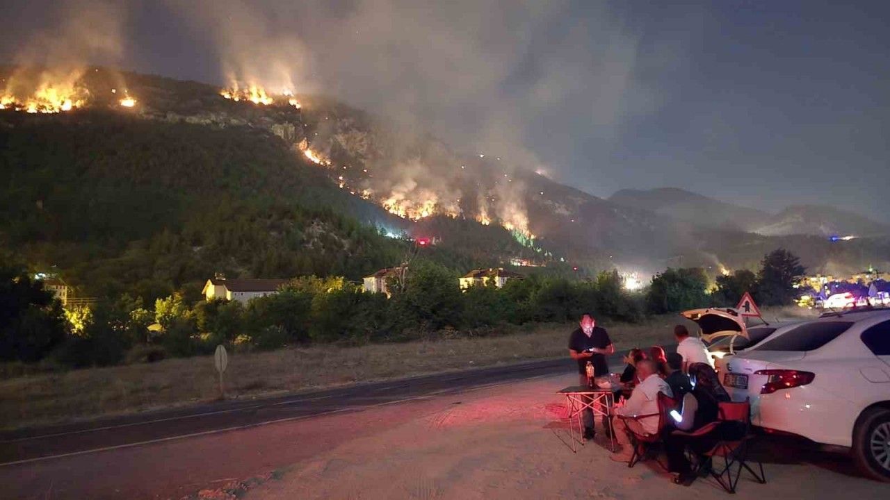 Karabük’teki orman yangınına ekiplerin yoğun müdahalesi sürerken, kamp saldalyelerinde yangını izleyen vatandaşlar ise dikkat çekti.