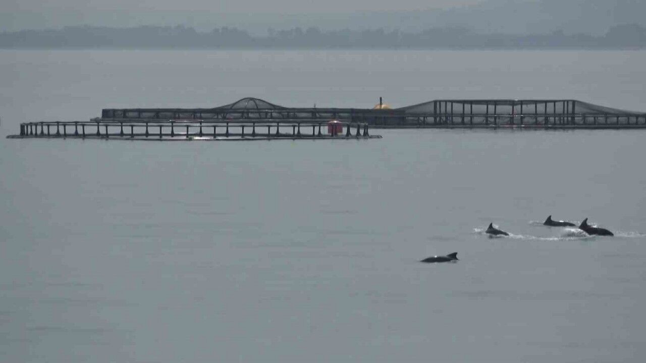 Samsun’da Karadeniz açıklarında yüzen yunuslar, Türk somonu hasat etkinliği sırasında görüntülendi. Denizin üstünde süzülen yunuslar, izleyenlere görsel şölen yaşattı.