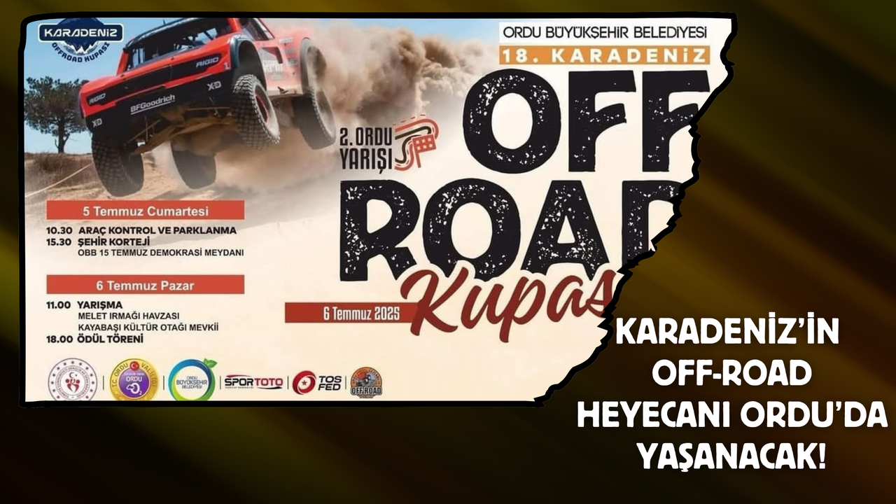 Motor sporları tutkunlarının merakla beklediği Karadeniz Off-Road Kupası'nın ikinci etabı bu yıl Ordu’da düzenleniyor. Türkiye Otomobil Sporları Federasyonu, Ordu Büyükşehir Belediyesi ve Gezenbilir Off-Road Spor Kulübü iş birliğinde gerçekleştirilecek yarışlar, 5-6 Temmuz tarihleri arasında Altınordu ilçesindeki Melet Irmağı kıyısında adrenalin dolu anlara sahne olacak.