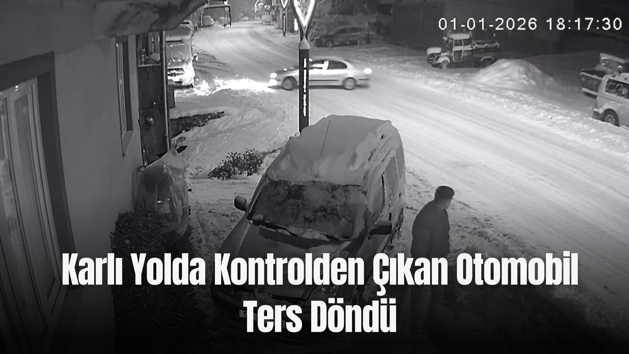 Ordu’nun Aybastı ilçesine bağlı Ortaköy Mahallesi’nde karla kaplı yolda meydana gelen trafik kazası, güvenlik kamerasına yansıdı. Dün akşam saatlerinde seyir halinde olan bir otomobil, yoğun kar nedeniyle kayganlaşan yolda sürücüsünün direksiyon hakimiyetini kaybetmesi sonucu kontrolden çıkarak ters döndü.