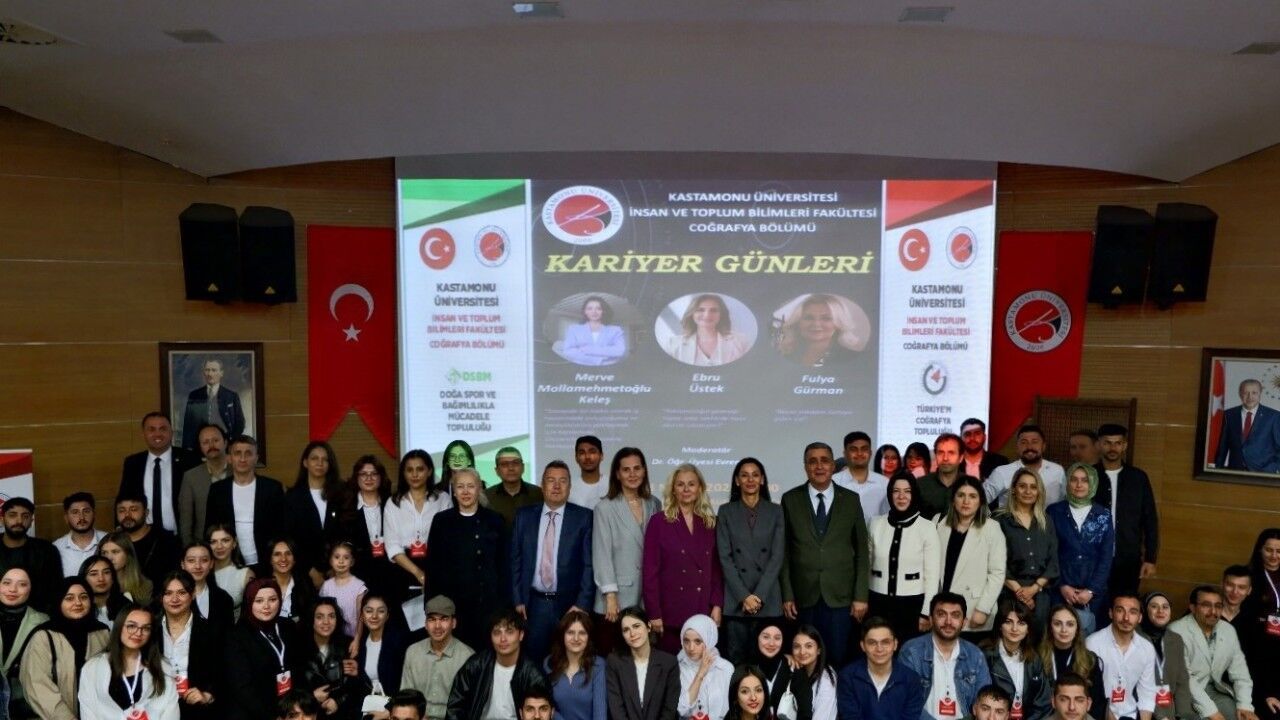 Kastamonu Üniversitesi İnsan ve Toplum Bilimleri Fakültesi, Coğrafya Bölümü tarafından düzenlenen Kariyer Günleri etkinliği, Merkez Kütüphane Cemil Meriç Salonu’nda gerçekleştirildi. Dr. Öğretim Üyesi Evren Atış’ın moderatörlüğünde yapılan panelde, bir firmanın yönetim kurulu başkanı Merve Mollamehmetoğlu Keleş, reklam ajansı sahibi Ebru Üstek ve iş kadını Fulya Gürman, öğrencilerle deneyimlerini ve iş dünyasıyla ilgili önemli bilgiler verildi.
