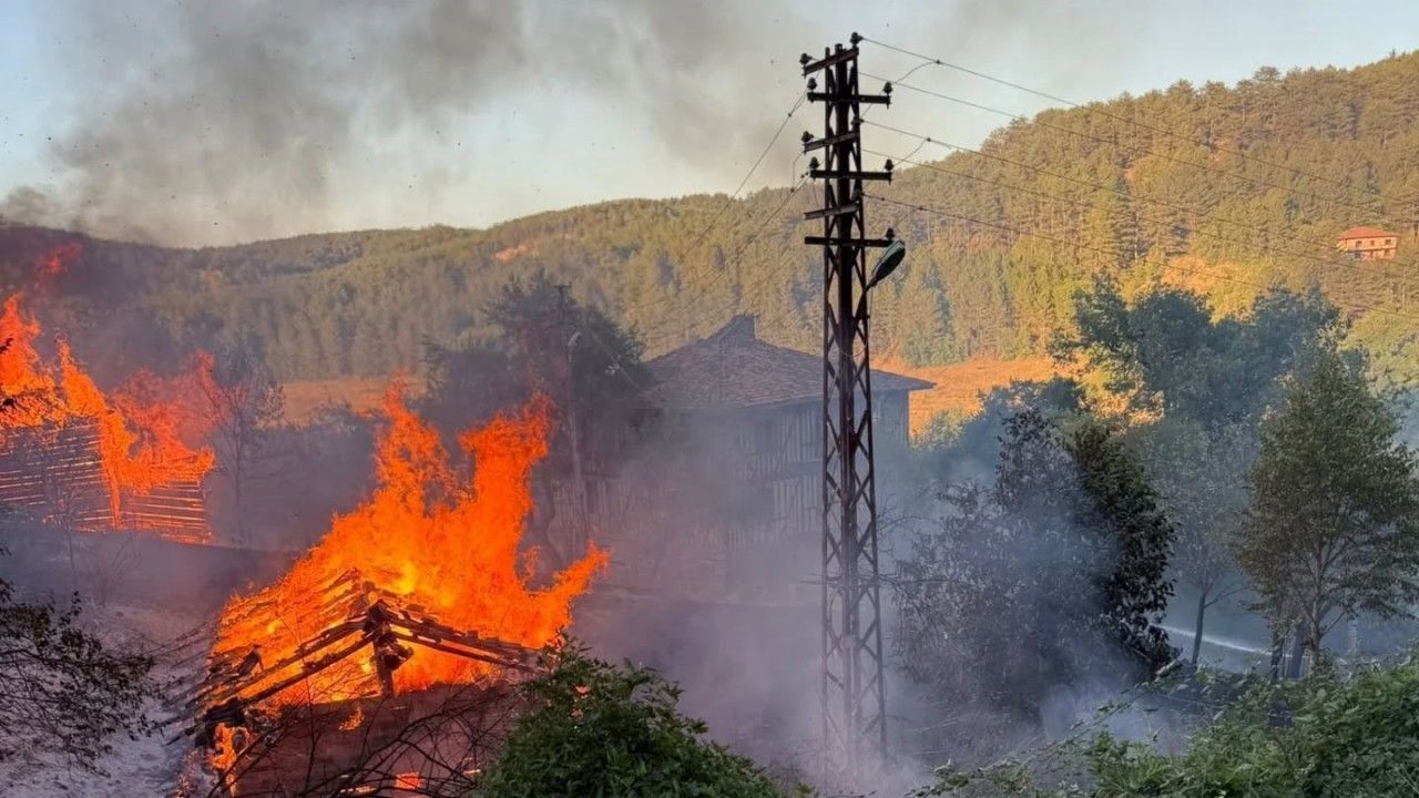 Kastamonu’nun Araç ilçesinde çıkan yangında iki samanlık yanarak küle döndü.