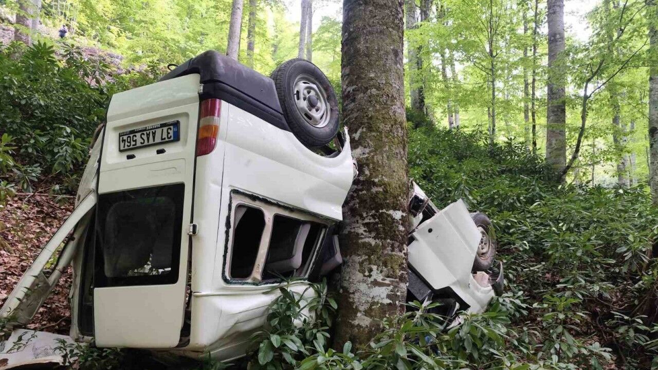 Kastamonu’nun Doğanyurt ilçesinde direksiyonunun kilitlenmesi üzerine yoldan çıkan minibüs, yaklaşık 80 metrelik uçurumda ormanlık alana yuvarlandı. Kazada minibüste bulunan 10 kişi yaralandı.