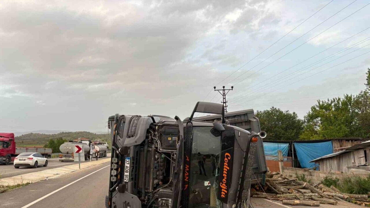Kastamonu-Sinop karayolunda odun yüklü tırın devrildiği kazada sürücü yaralandı.