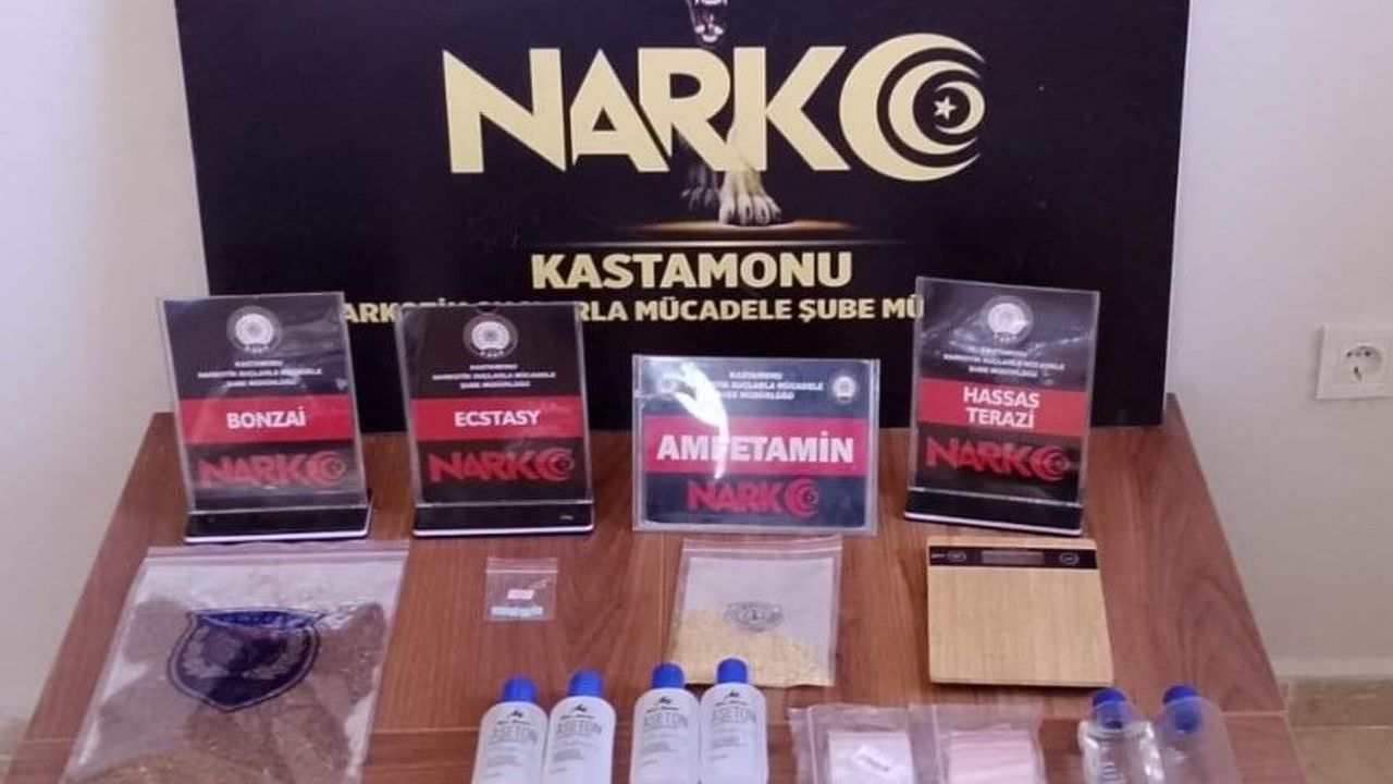 Edinilen bilgiye göre, Kastamonu İl Emniyet Müdürlüğü Asayiş ve Narkotik Suçlarla Mücadele Şube Müdürlüğü ekiplerince tespiti yapılan bir ikamette arama yapıldı. Aramada 23,41 gram bonzai, 67,35 gram bonzai çoğaltımında kullanılan tütün, 61,73 gram sentetik kannabinoid ham maddesi, 4 adet ecstasy maddesi, 1 adet hassas terazi, 4 adet üretimde kullanıldığı değerlendirilen aseton, 3 adet elektronik sigara likidi, 8 bin 530 TL nakit para ile çok sayıda şeffaf kilitli poşet ele geçirildi.