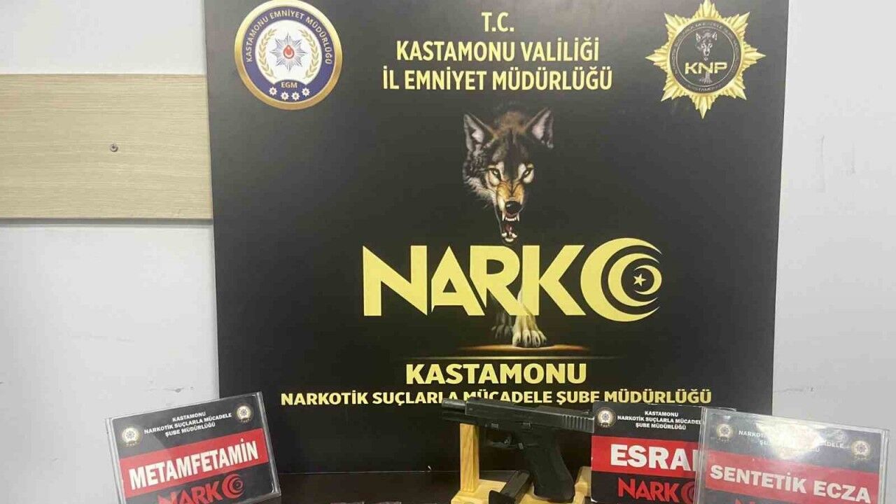 Edinilen bilgiye göre, Kastamonu İl Emniyet Müdürlüğü Narkotik Suçlarla Mücadele Şube Müdürlüğü ekiplerince yapılan çalışmalar neticesinde, 9 şahsın ikametlerinde ve araçlarında arama yapıldı. Aramalarda satışa hazır bir miktar metamfetamin, 1,38 gram esrar, 37 adet uyuşturucu hap ve 4 adet uyuşturucu içiminde kullanılan cam düzenek ile 1 adet ruhsatsız tabanca ele geçirildi. Adliyeye sevk edilen 9 şüpheliden 1’i, tutuklanarak cezaevine gönderildi.