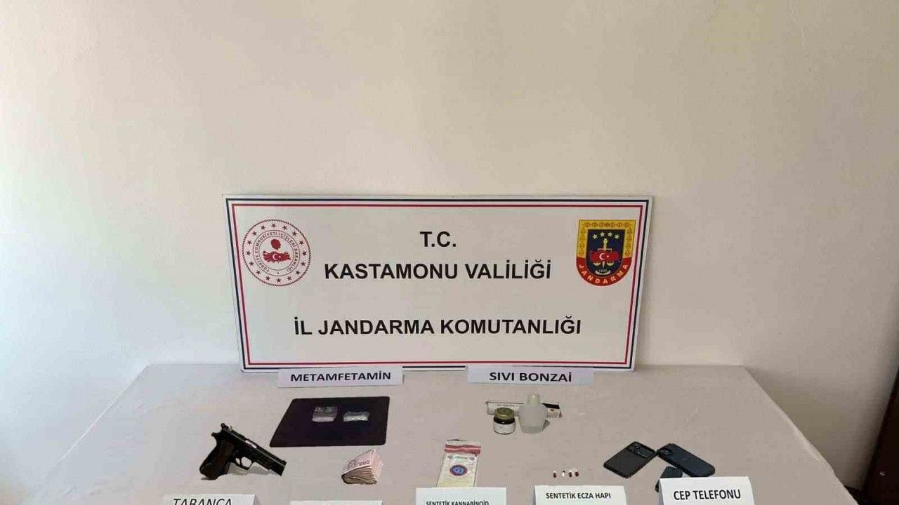 Edinilen bilgiye göre, Kastamonu İl Jandarma Komutanlığınca uyuşturucuyla mücadele çalışmaları neticesinde, 5 gram metamfetamin, 37 gram bonzai hammaddesi, 1 adet ruhsatsız tabanca, 3 adet cep telefonu ve SIM kartı, suçtan elde edildiği değerlendirilen 10 bin 240 TL para ele geçirildi. Konuyla ilgili gözaltına alınan 9 şüpheli hakkında adli işlem başlatıldı.