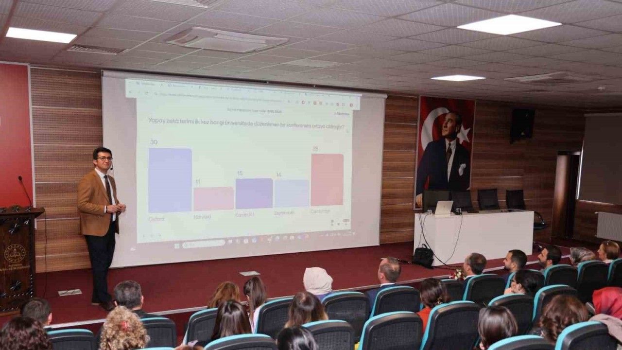 Kastamonu İl Millî Eğitim Müdürlüğünün düzenlediği "Vizyon Buluşmaları" kapsamında, Karabük Üniversitesinden Doç. Dr. Mustafa Polat, öğretmenlere yapay zekânın yabancı dil öğretiminde kullanımı üzerine seminer verdi.