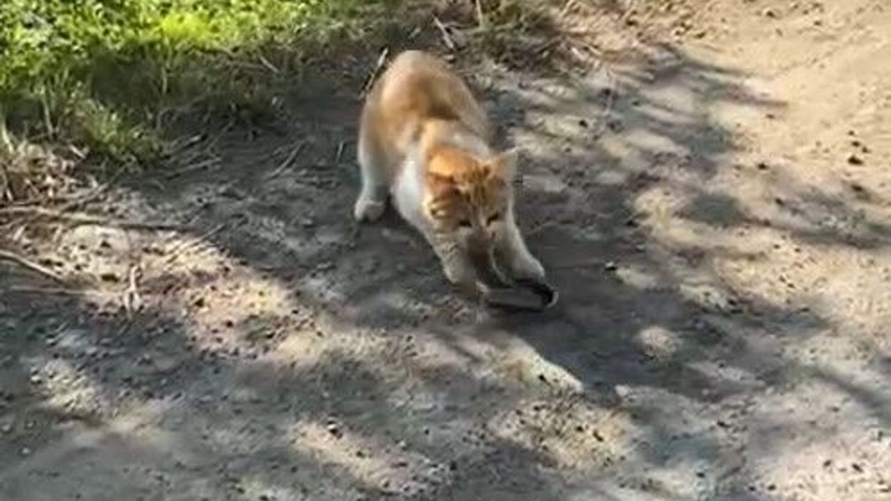 Kedinin çevik hamlelerle yılanı yakalayıp taşıdığı görüntüler sosyal medyada ilgi görürken, doğanın içindeki bu anlar izleyenlerin dikkatini çekti.