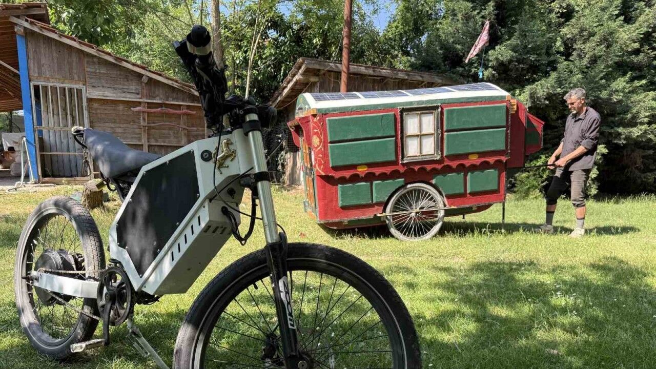 Uzun zamandır dünya turuna çıkma hayali kuran 49 yaşındaki Evan Millner, Fransa’da arkadaşlarıyla otururken elektrikli bisikletle karavan turuna çıkan kişilerin olduğunu öğrendi. Bu fikirden ilham alan Millner, internette karavan yapımıyla ilgili araştırmalar yaptıktan sonra Yunanistan’a giderek iki ay boyunca çalıştı ve 45 kilogram ağırlığında bir karavan yaptı.