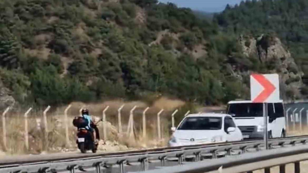 Tokat’ta D-100 karayolunda ters şeritte kilometrelerce ilerleyen motosiklet sürücüsü kameraya yansıdı.