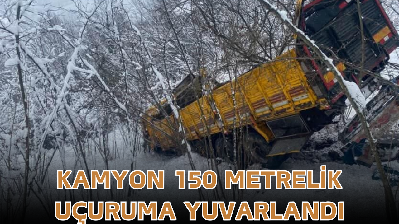 Edinilen bilgilere göre, kayganlaşan yolda sürücüsünün direksiyon hâkimiyetini kaybettiği kamyon, yaklaşık 150 metrelik uçuruma savruldu. Kazanın son anda farkına varan sürücü, araçtan atlayarak canını kurtardı ancak yaralandı.