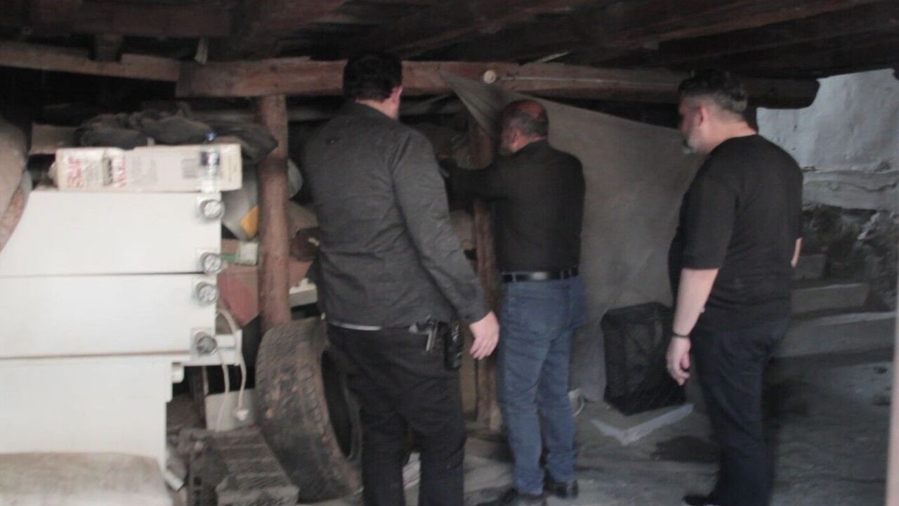Kastamonu’da kötü koku ihbarı üzerine polis ekiplerinin girdiği evde, define bulmak için kazılmış 30 metre derinliğinde tünel bulundu.