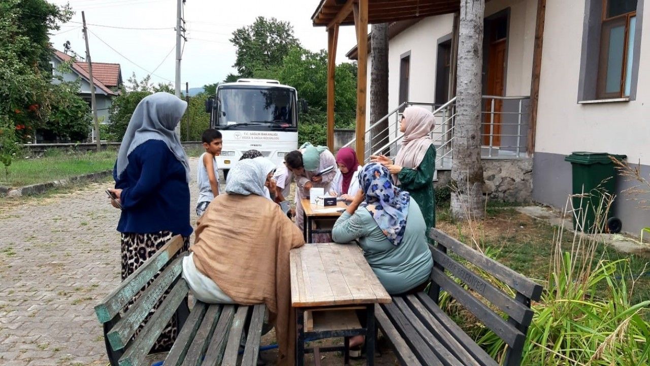 DÜZCE(İHA) – Düzce Sağlık Müdürlüğü Halk Sağlığı Hizmetleri Başkanlığı ekipleri sadece kent merkezinde değil, köylerde de mobil Kanser Erken Teşhis, Tarama ve Eğitim Merkezi (KETEM) araçlarıyla tarama gerçekleştiriyor, bilgiler veriyorlar.